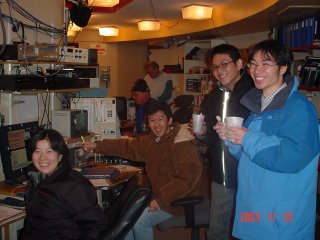 左)ハワイ大学2.2m望遠鏡に装着された近赤外線カメラSIRIUSの前でSIRIUSメンバーとファーストライト記念撮影、右)南アフリカ天文台1.4m望遠鏡(2018年1月撮影)
