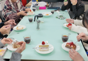 近所で調達してもらったケーキが淹れたてコーヒーにベストマッチしました。ちなみに、湯川研に出入りするとみんなコーヒー好きになります。