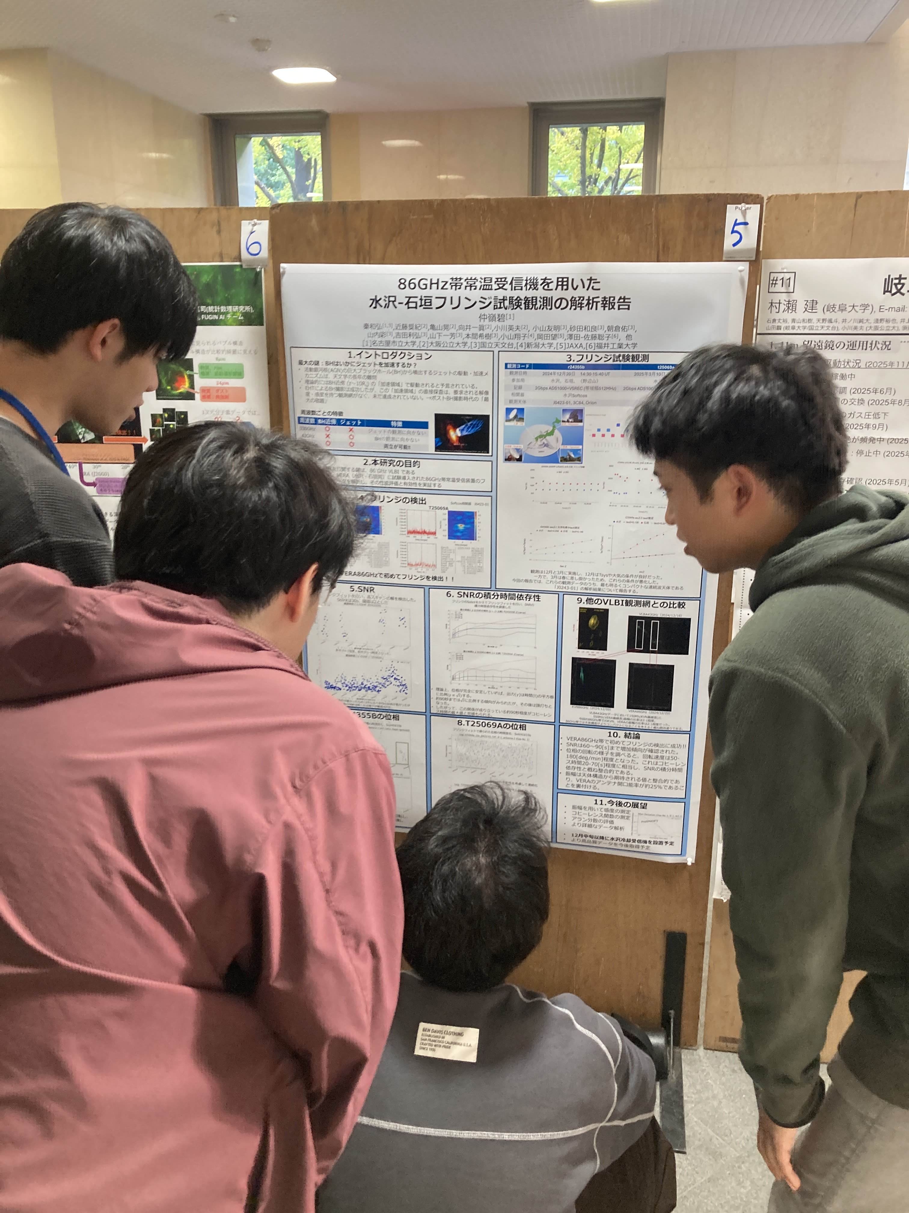 国内のVLBI研究者が一同に会するVLBI懇談会シンポジウムに4年生と一緒に参加してきました.今年は鹿児島大学で開催です.現在進行中の研究について丸山くんは口頭発表、ガクくんと仲嶺くんはポスター発表をしました.3人とも初めての対外発表でしたが、堂々とした発表で他大学の大学院生にも負けず劣らずの発表をしてくれました.他大学の大学院生や研究者とも活発に議論交流する姿は頼もしく、4年生にとっても大変刺激を受ける経験となったようです.